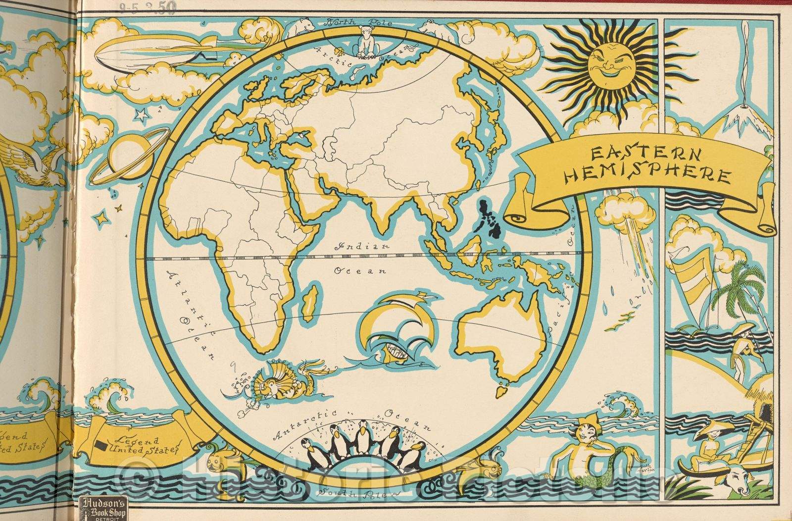 Historic Map : Eastern Hemisphere, 1935 , Vintage Wall Art