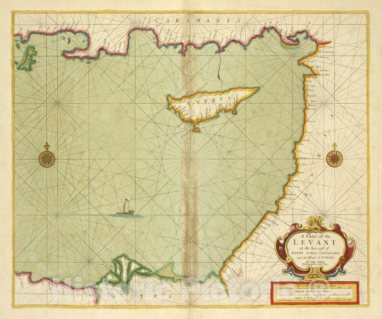 Historic 1702 Map - A Chart Of The Levant Or The Sea Coast Of Egypt, Syria, Caramani