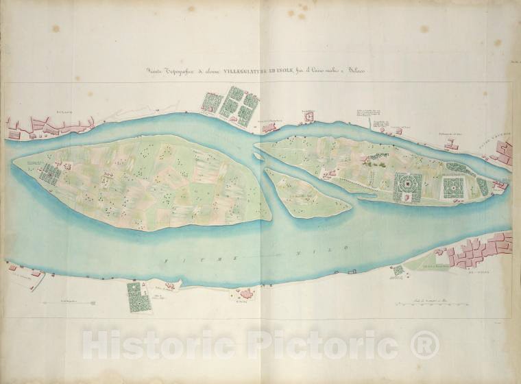 Historic 1835 Map - Pianta Topografica Di Alcune Villeggiature Ed Isole, Fra Il Cairo Vecchio E Bulaco. - Egypt - Vintage Wall Art