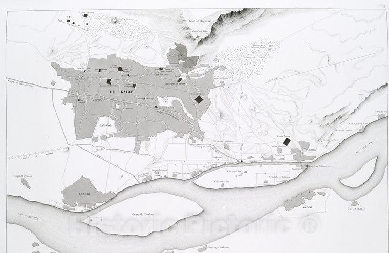 • .Historic 1839 Map - Le Kaire Et Ses Environs - Cairo (Egypt) - Nile River - Vintage Wall Art