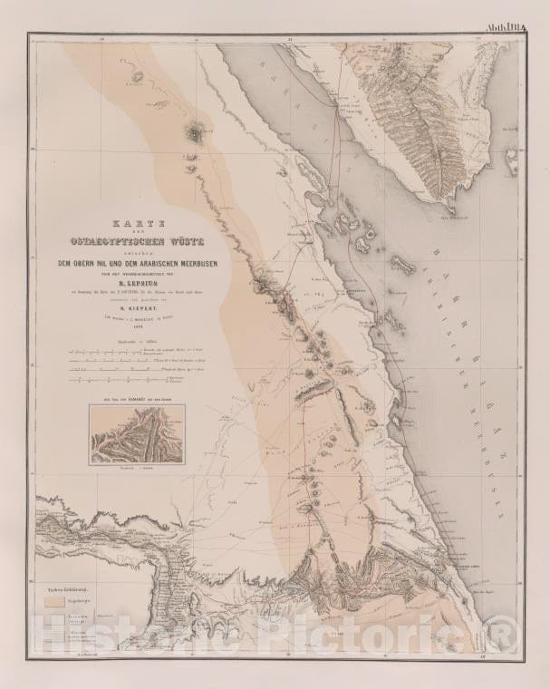 • .Historic 1849 Map - Karte Der Ostaegyptischen Wuste Zwischen Dem Obern Nil Und Dem Arabischen Meerbusen. - Egypt - Vintage Wall Art