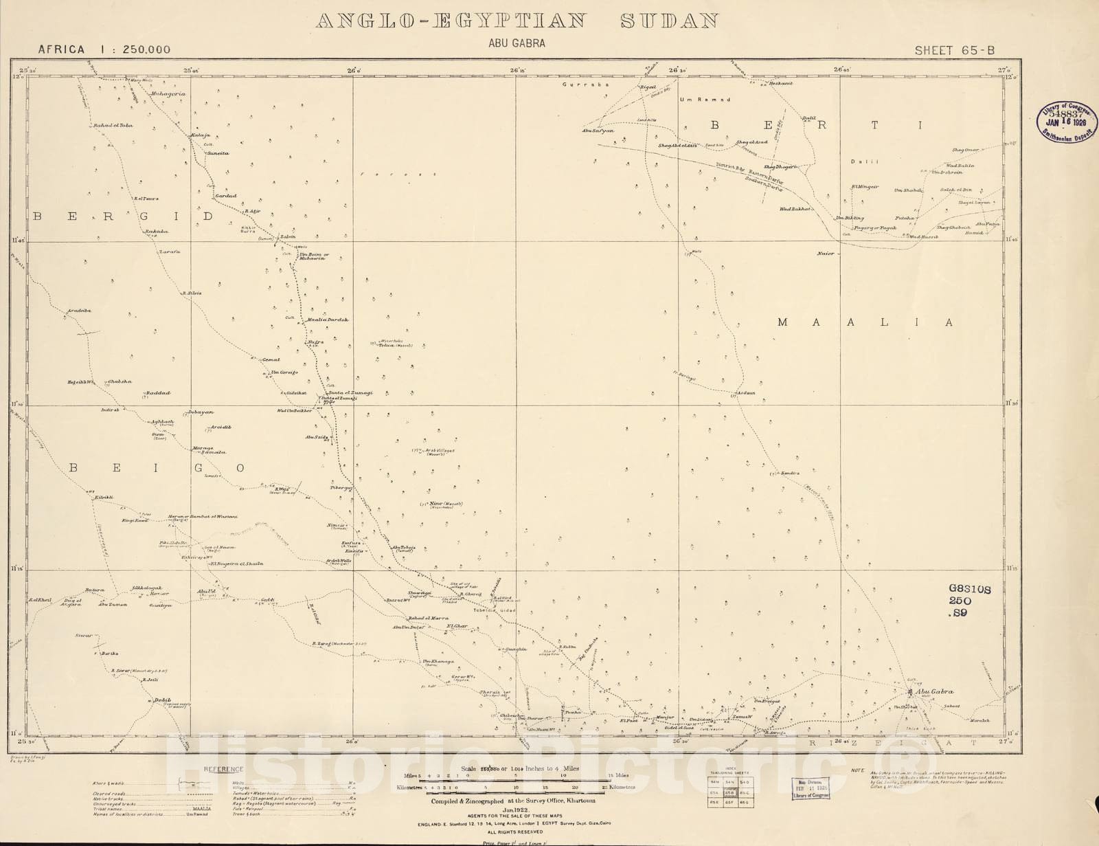 Historic 1909 Map - Sudan 1:250,000 - Abu Gabra Sheet 65-B Jan 1922 - Anglo-Egyptian Sudan