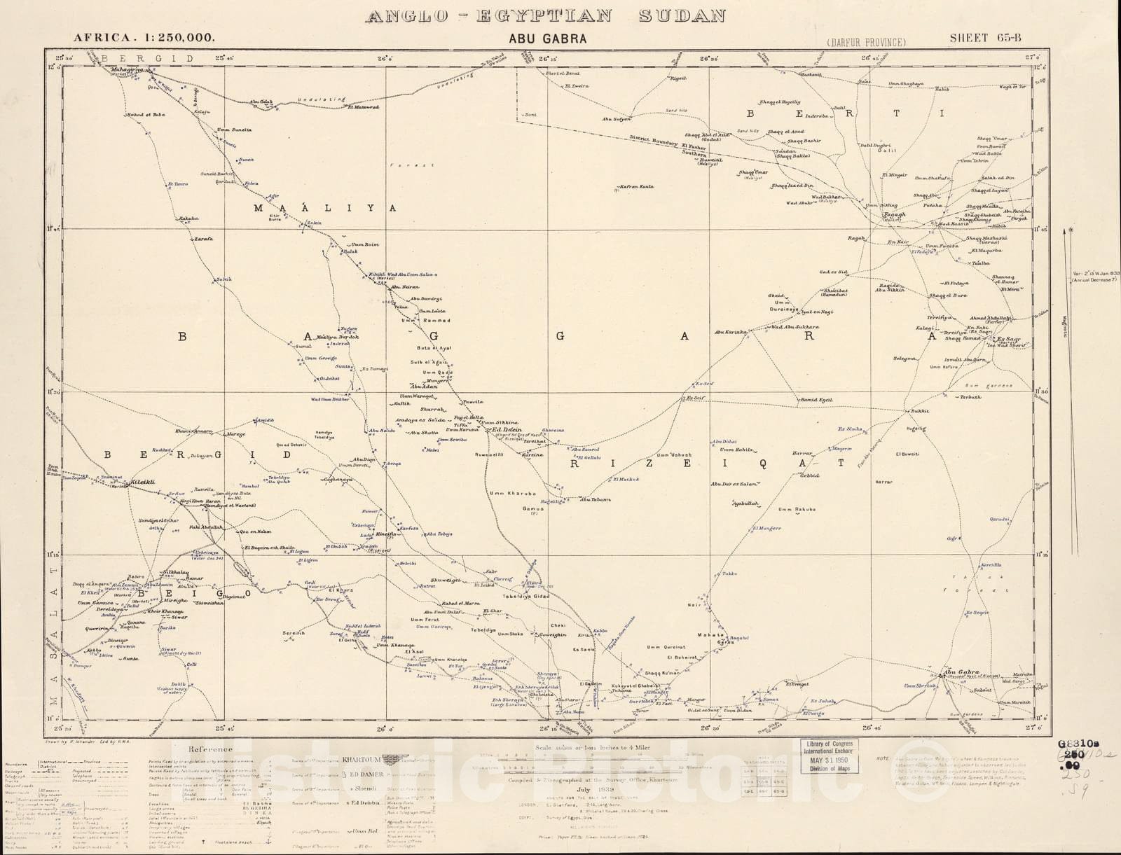 Historic 1909 Map - Sudan 1:250,000 - Abu Gabra Sheet 65-B Jul 1939 - Anglo-Egyptian Sudan 1
