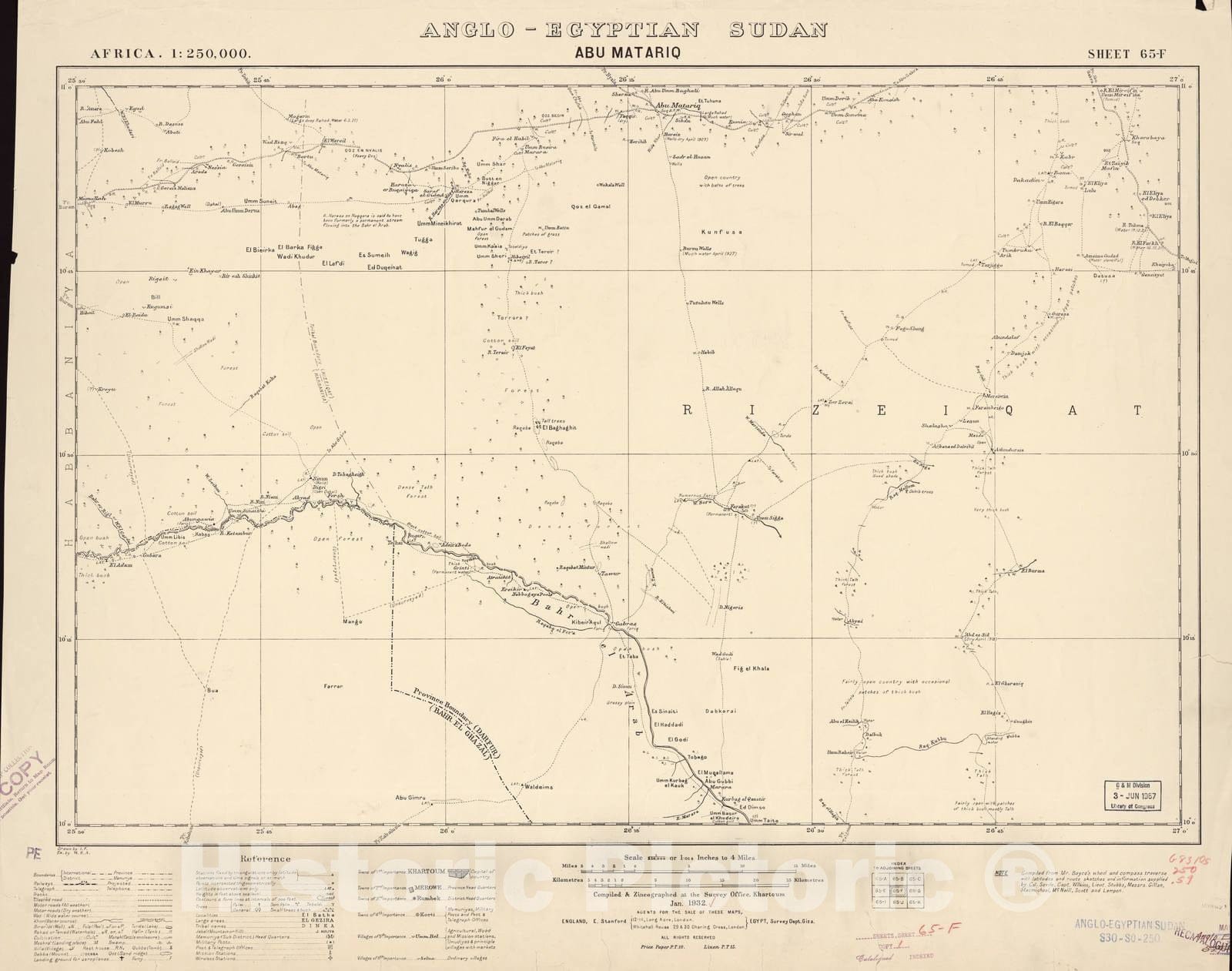 Historic 1909 Map - Sudan 1:250,000 - Abu Matariq Sheet 65-F Jan 1932 - Anglo-Egyptian Sudan
