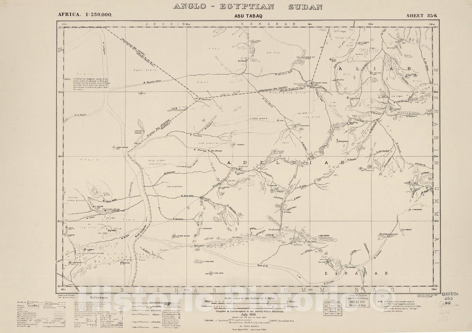 Historic 1909 Map - Sudan 1:250,000 - Abu Tabag Sheet 35-K July 1930 - Anglo-Egyptian Sudan