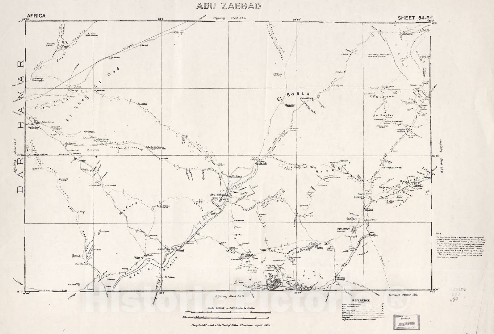 Historic 1909 Map - Sudan 1:250,000 - Abu Zabbad Sheet 54-P Apr 1909 - Anglo-Egyptian Sudan
