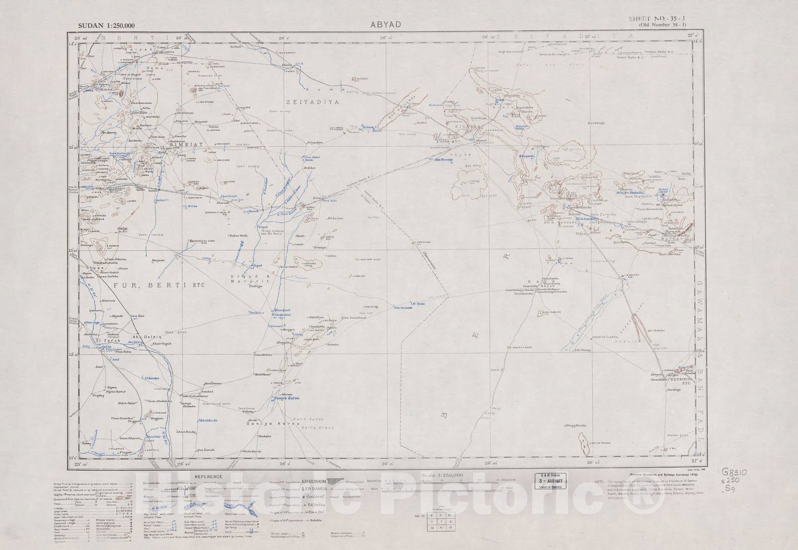 Historic 1909 Map - Sudan 1:250,000 - Abyad Sheet ND-35-J (Old Number 54-J) 1940 - Anglo-Egyptian Sudan