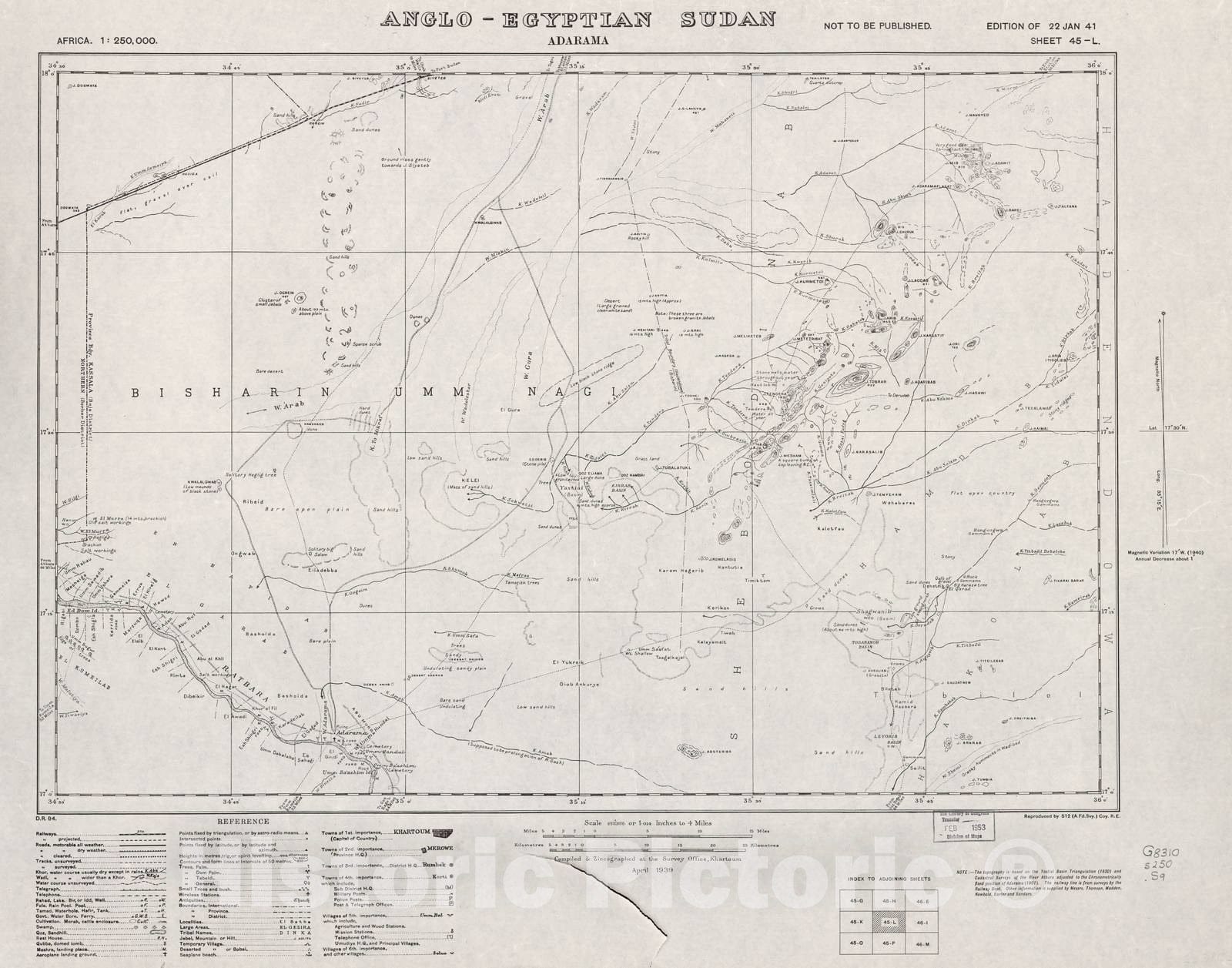 Historic 1909 Map - Sudan 1:250,000 - Adarama Sheet 45-L Apr 1939 - Anglo-Egyptian Sudan