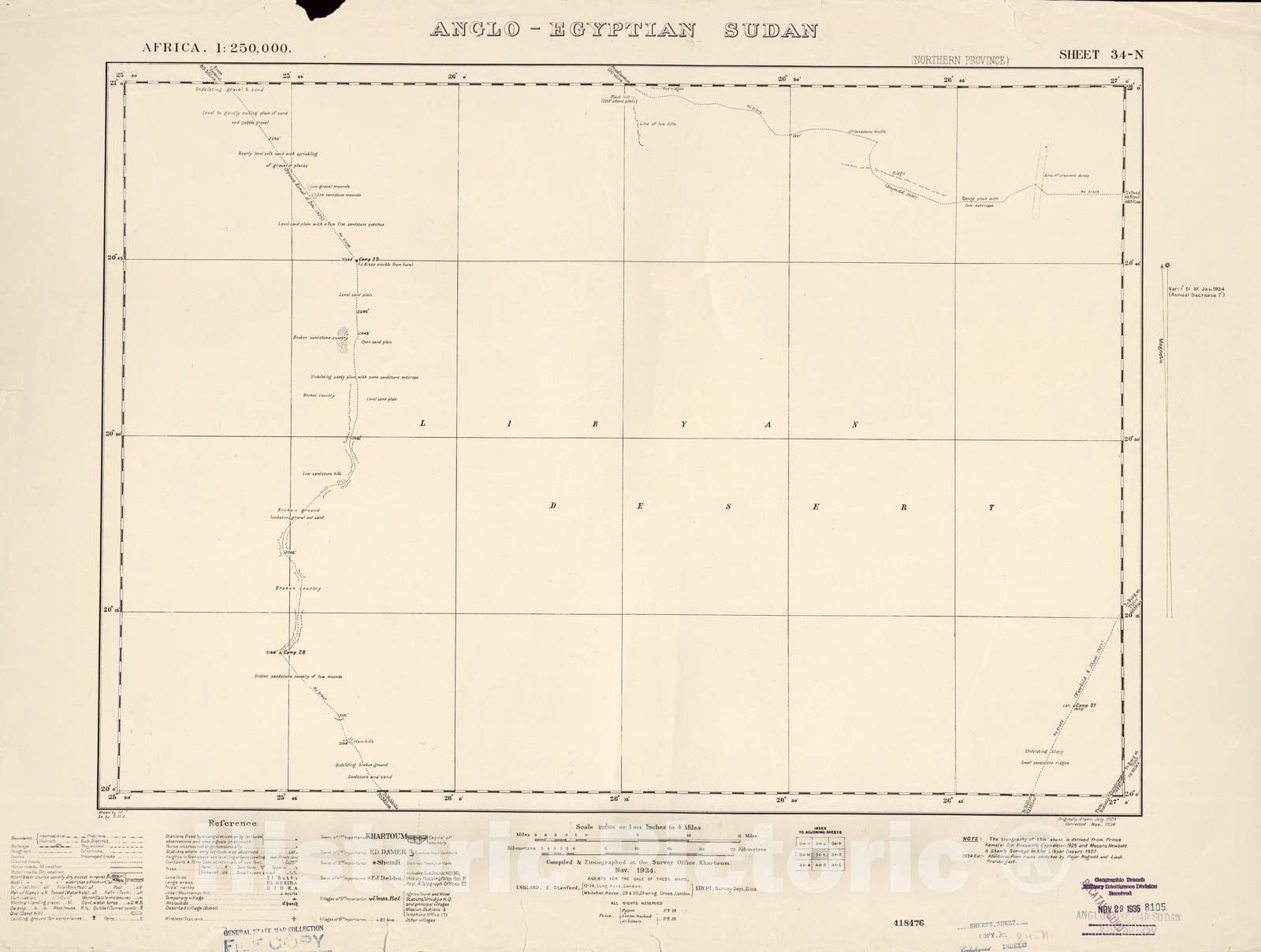 Historic 1909 Map - Sudan 1:250,000 - Anglo-Egyptian Sudan 34-N Nov 1934 - Anglo-Egyptian Sudan