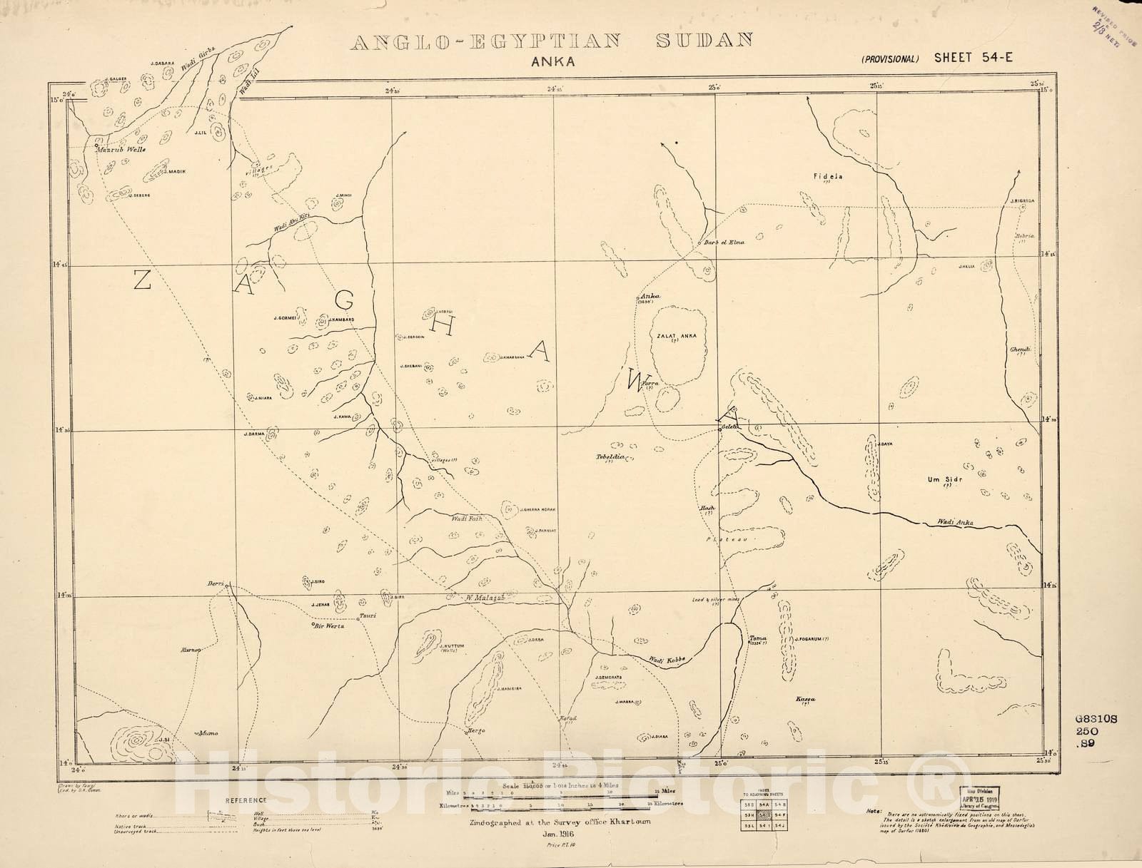 Historic 1909 Map - Sudan 1:250,000 - Anka Sheet 54-E Jan 1916 - Anglo-Egyptian Sudan
