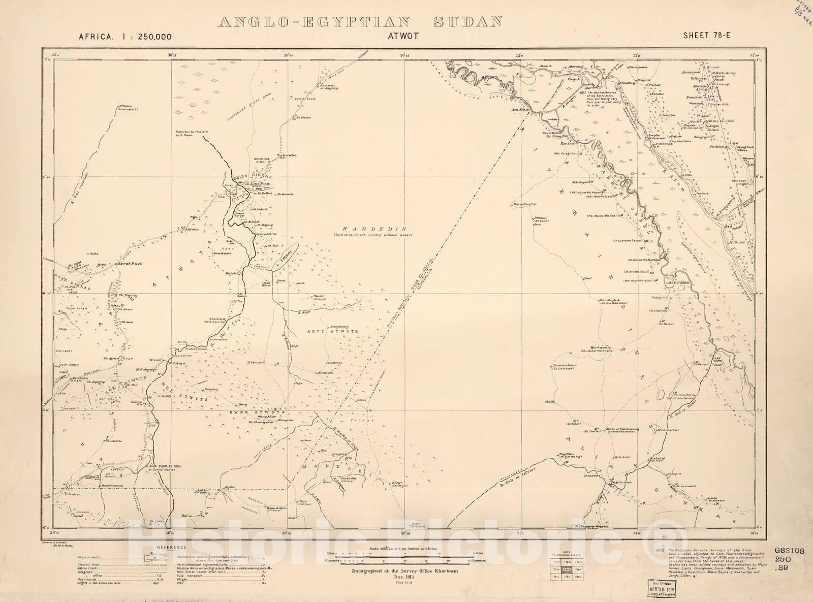 Historic 1909 Map - Sudan 1:250,000 - Atwot Sheet 78-E Dec 1913 - Anglo-Egyptian Sudan