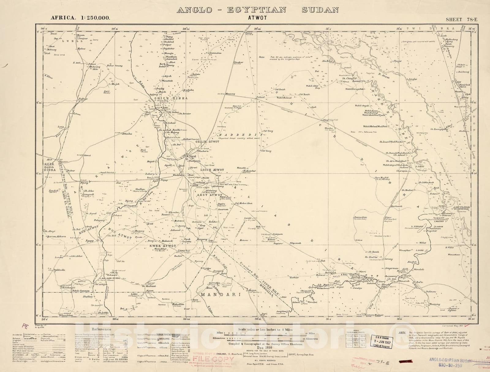 Historic 1909 Map - Sudan 1:250,000 - Atwot Sheet 78-E Dec 1930 - Anglo-Egyptian Sudan