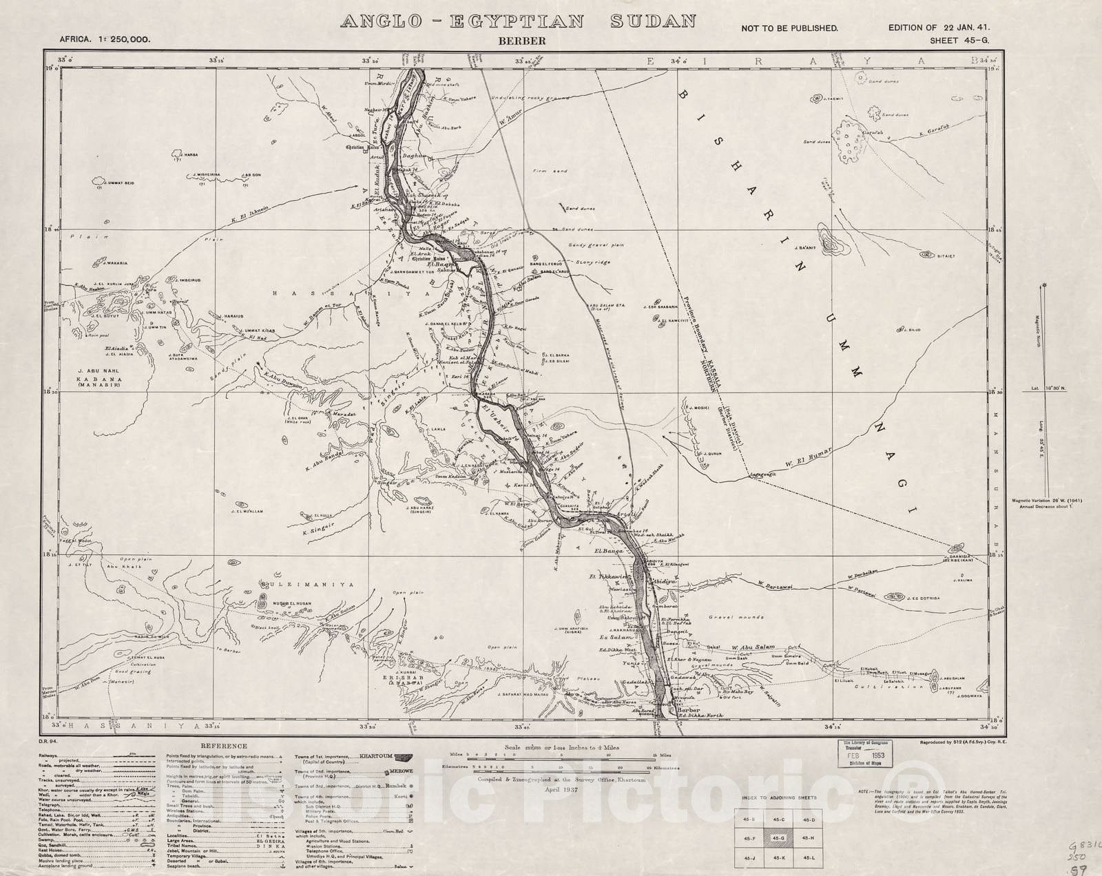 Historic 1909 Map - Sudan 1:250,000 - Berber Sheet 45-G Apr 1937 - Anglo-Egyptian Sudan