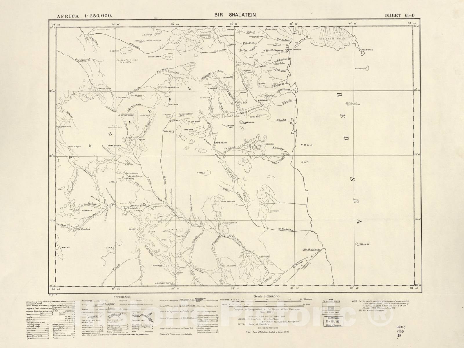 Historic 1909 Map - Sudan 1:250,000 - Bir Shalatein Sheet 35-D Dec 1929 - Anglo-Egyptian Sudan