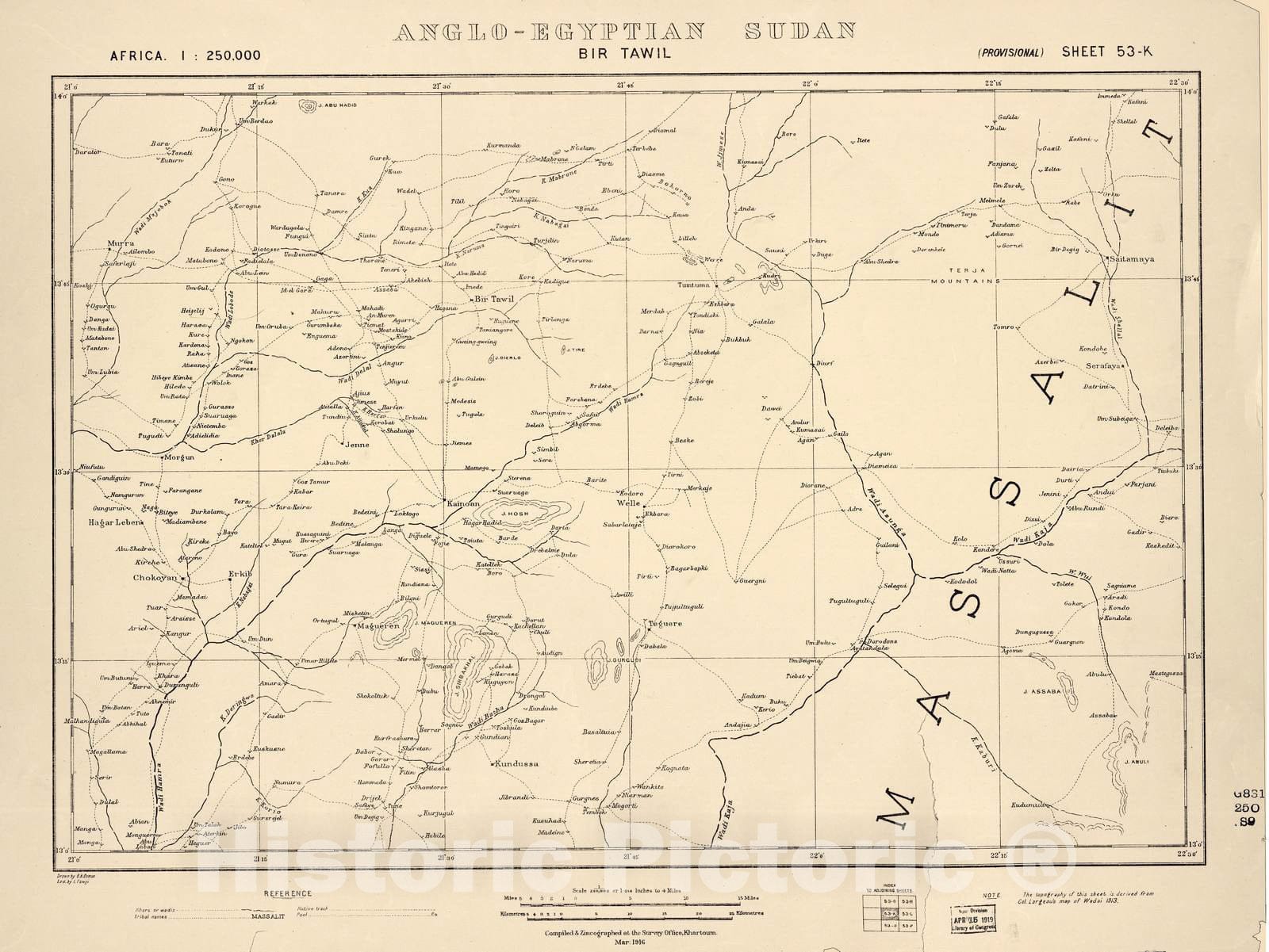 Historic 1909 Map - Sudan 1:250,000 - Bir Tawil Sheet 53-K Mar 1916 - Anglo-Egyptian Sudan