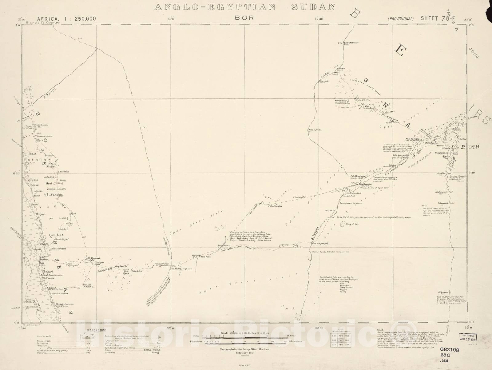 Historic 1909 Map - Sudan 1:250,000 - BOR Sheet 78-F Feb 1913 - Anglo-Egyptian Sudan