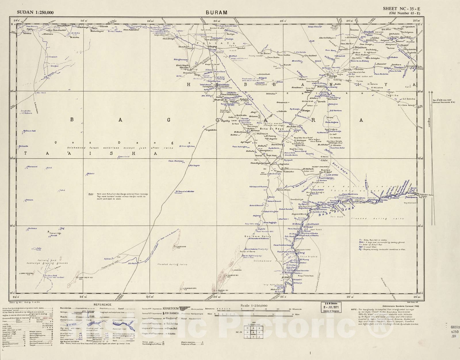 Historic 1909 Map - Sudan 1:250,000 - Buram Sheet NC-35-E (Old Number 65-E; No Month) 1968 - Anglo-Egyptian Sudan