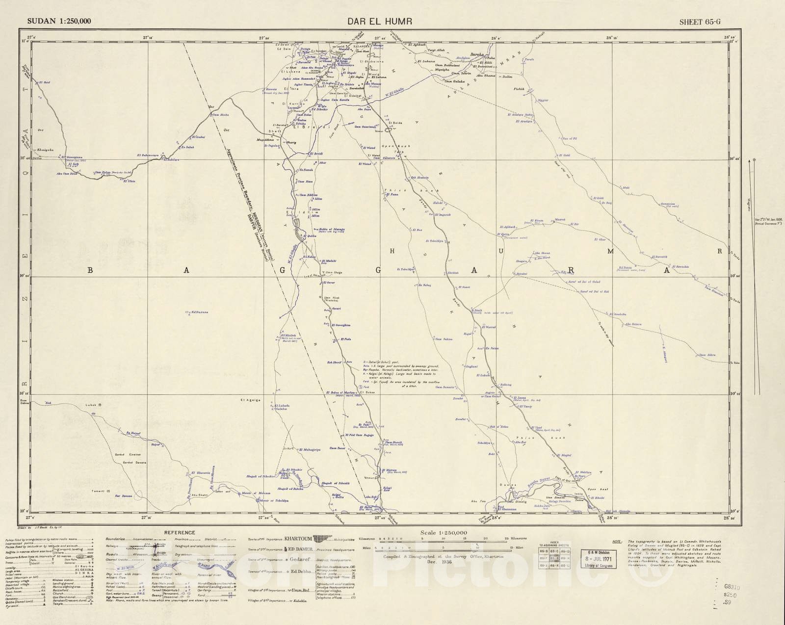 Historic 1909 Map - Sudan 1:250,000 - DAR El Humr Sheet 65-G Dec 1936 - Anglo-Egyptian Sudan 1
