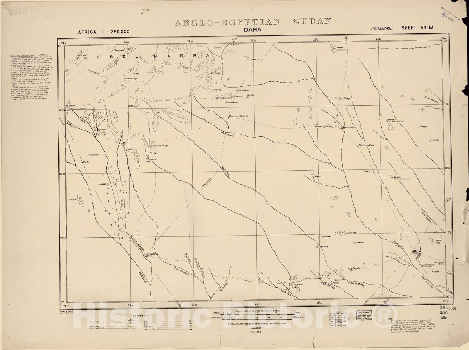 Historic 1909 Map - Sudan 1:250,000 - Dara Sheet 54-M Jan 1916 - Anglo-Egyptian Sudan