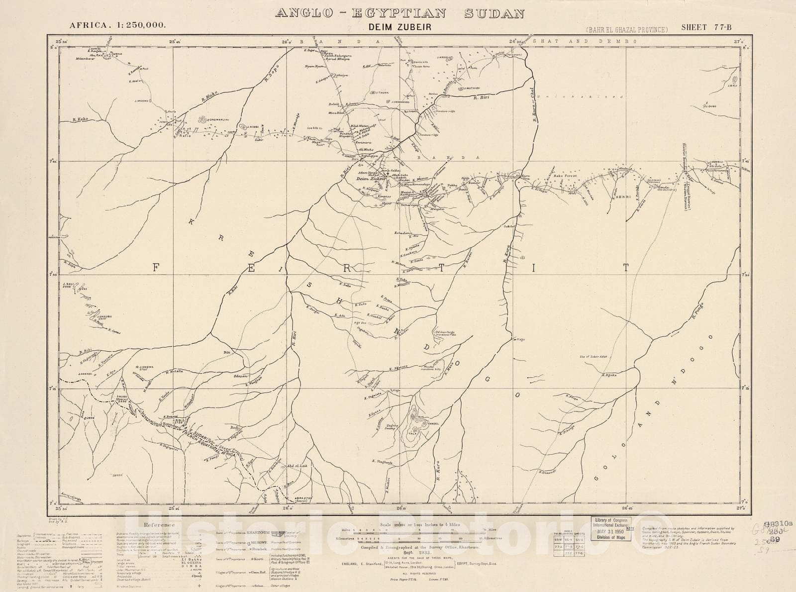 Historic 1909 Map - Sudan 1:250,000 - Deim Zubeir Sheet 77-B Sep 1933 - Anglo-Egyptian Sudan