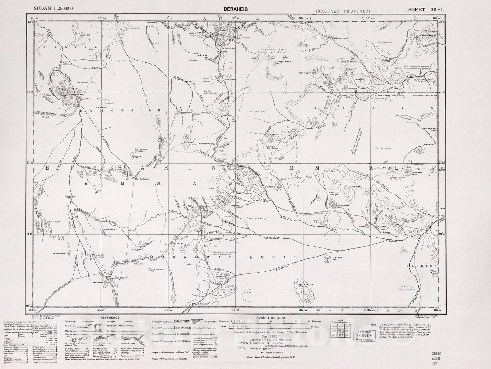 Historic 1909 Map - Sudan 1:250,000 - Deraheib Sheet 35-L Sep 1932 - Anglo-Egyptian Sudan