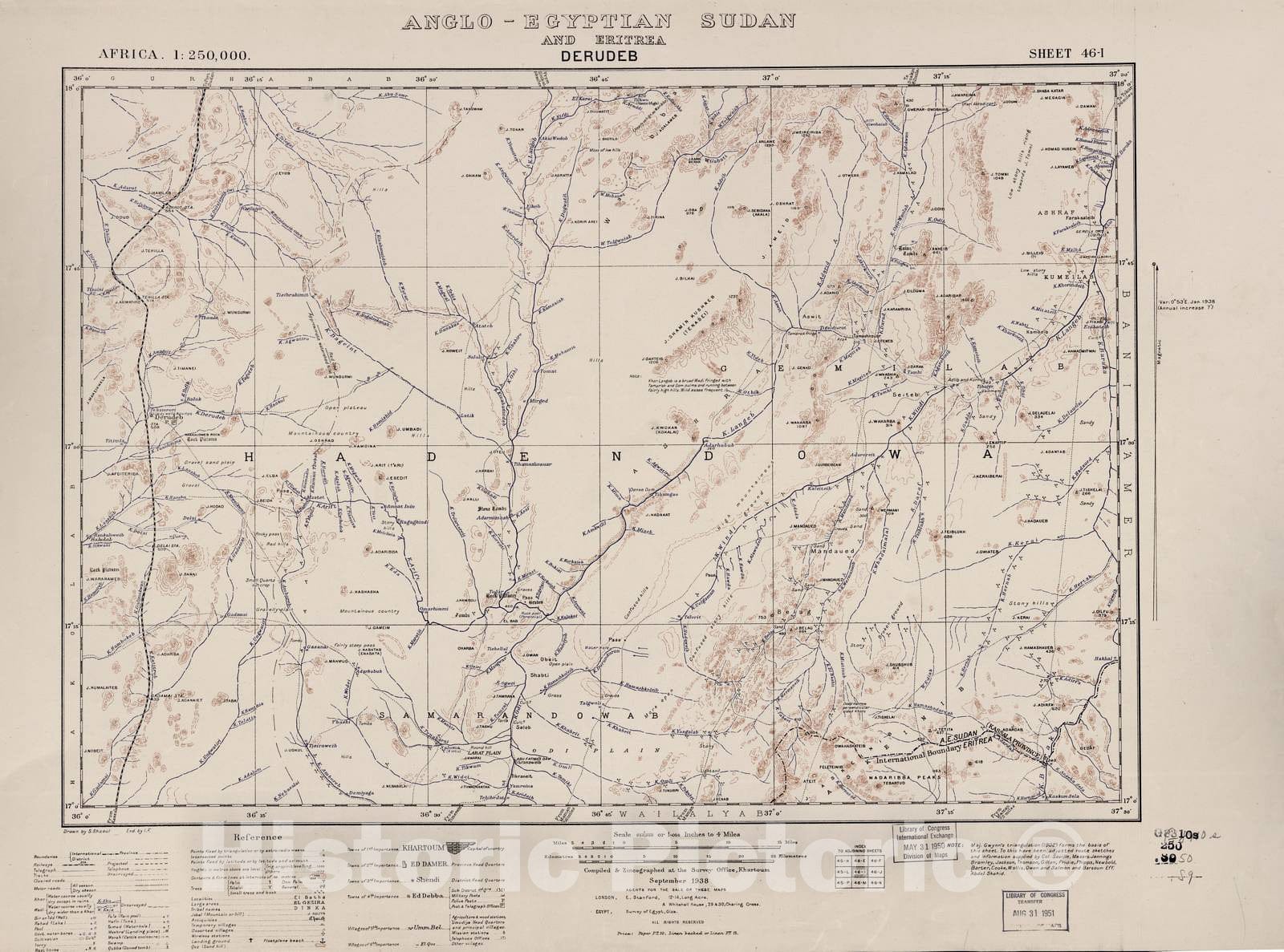 Historic 1909 Map - Sudan 1:250,000 - Derudeb Sheet 46-I Sep 1938 - Anglo-Egyptian Sudan