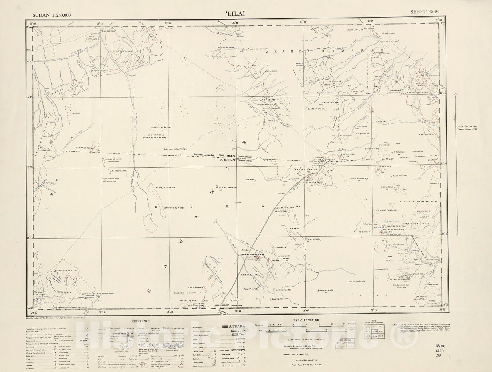 Historic 1909 Map - Sudan 1:250,000 - Eilai Sheet 45-M Apr 1956 - Anglo-Egyptian Sudan
