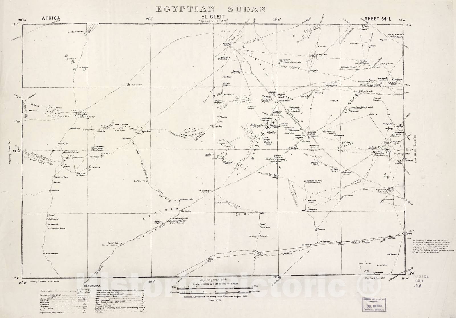 Historic 1909 Map - Sudan 1:250,000 - El Gleit Sheet 54-L Aug 1908 - Anglo-Egyptian Sudan