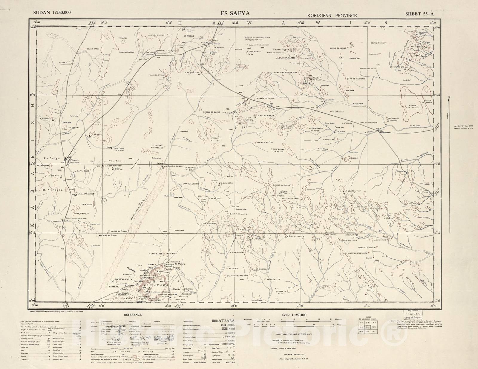 Historic 1909 Map - Sudan 1:250,000 - ES Safya Sheet 55-A Aug 1955 - Anglo-Egyptian Sudan