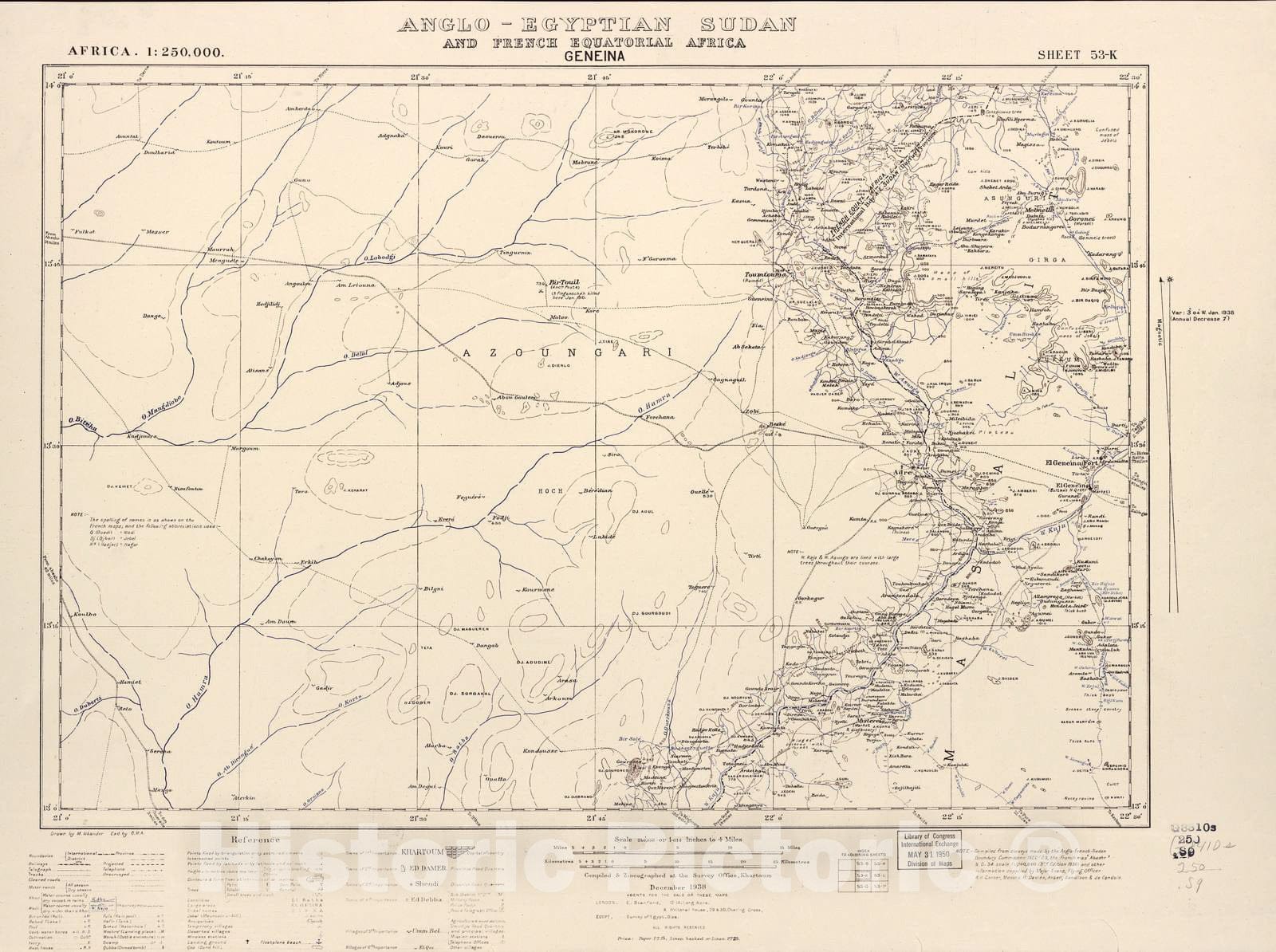 Historic 1909 Map - Sudan 1:250,000 - Geneina Sheet 53-K Dec 1938 - Anglo-Egyptian Sudan