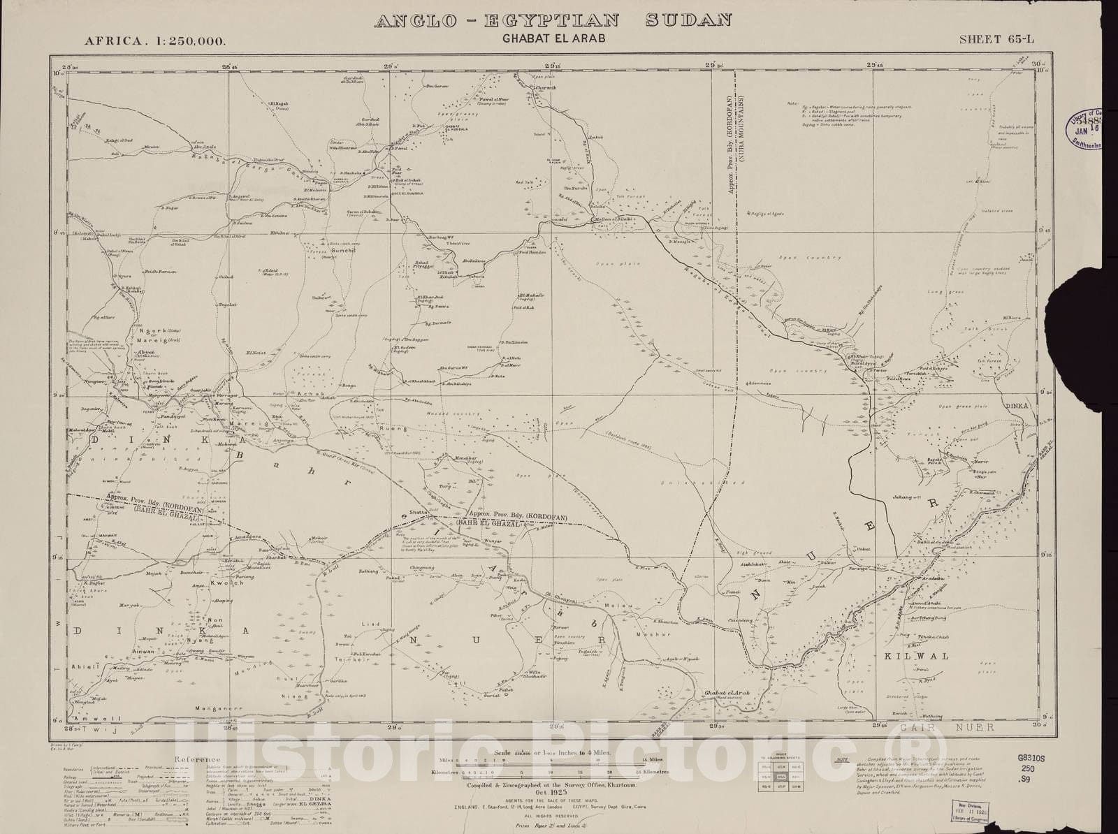 Historic 1909 Map - Sudan 1:250,000 - Ghabat El Arab Sheet 65-L Oct 1925 - Anglo-Egyptian Sudan