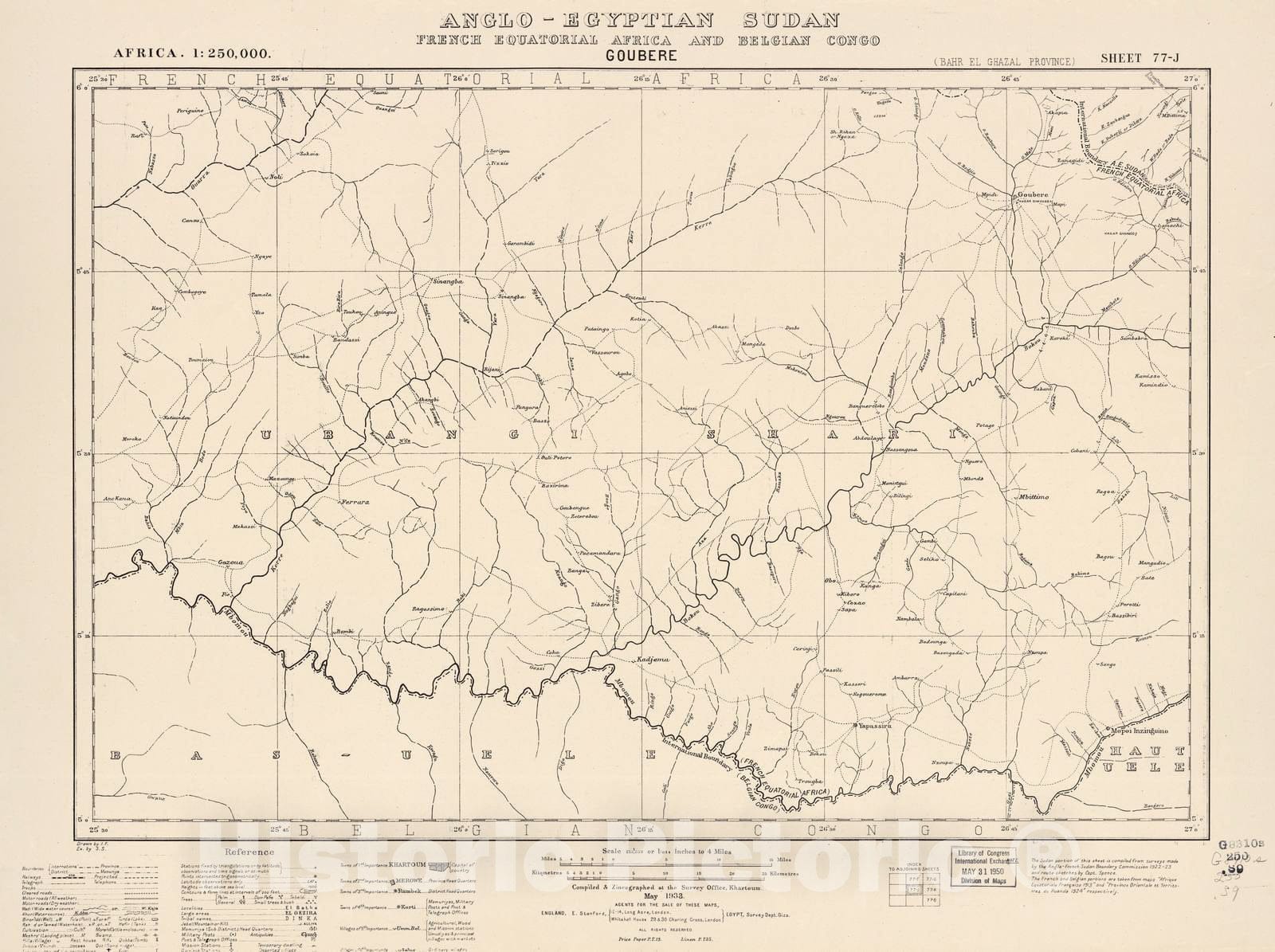 Historic 1909 Map - Sudan 1:250,000 - Goubere Sheet 77-J May 1933 - Anglo-Egyptian Sudan