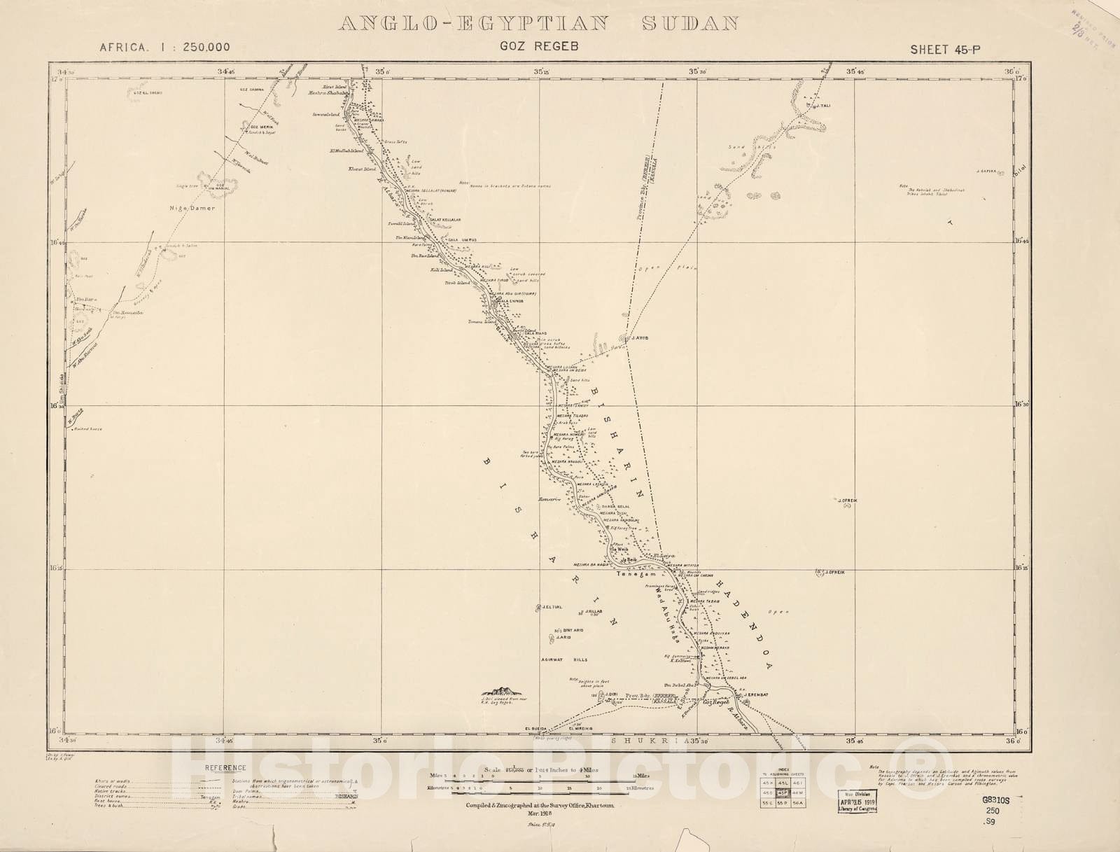Historic 1909 Map - Sudan 1:250,000 - Goz Regeb Sheet 45-P Mar 1918 - Anglo-Egyptian Sudan
