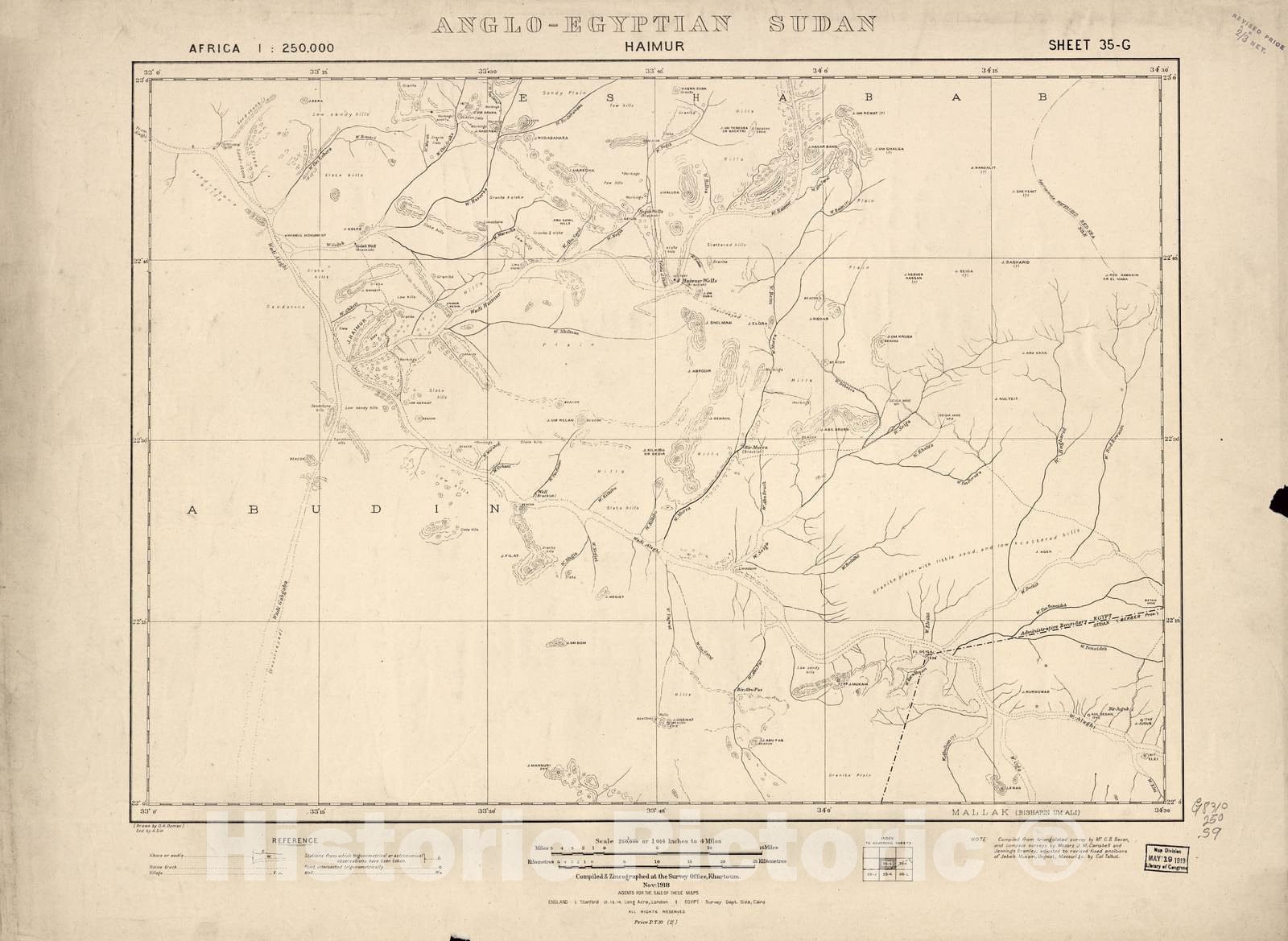 Historic 1909 Map - Sudan 1:250,000 - Haimur Sheet 35-G Nov 1918 - Anglo-Egyptian Sudan