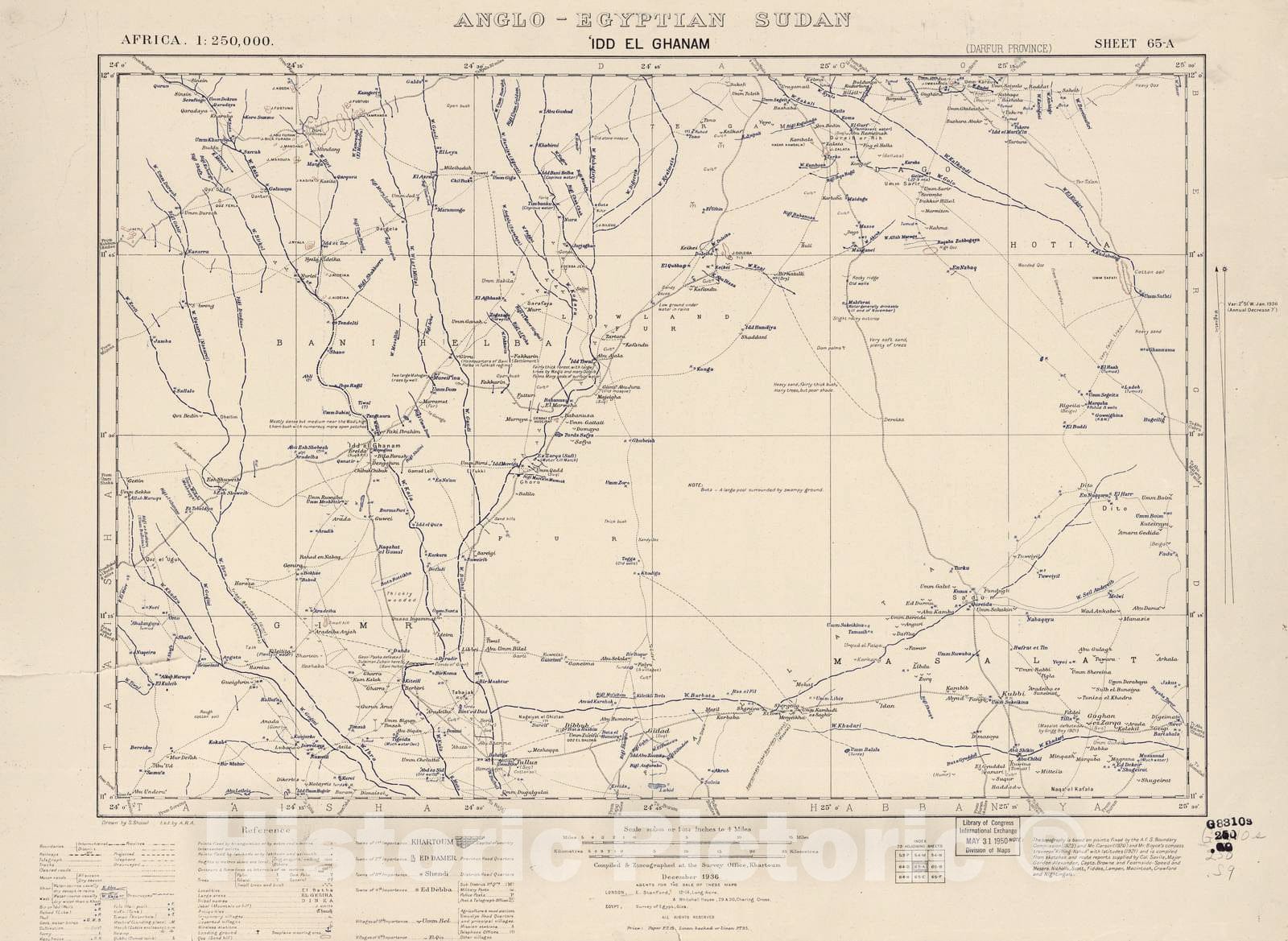 Historic 1909 Map - Sudan 1:250,000 - Idd El Ghanam Sheet 65-A Dec 1936 - Anglo-Egyptian Sudan 1