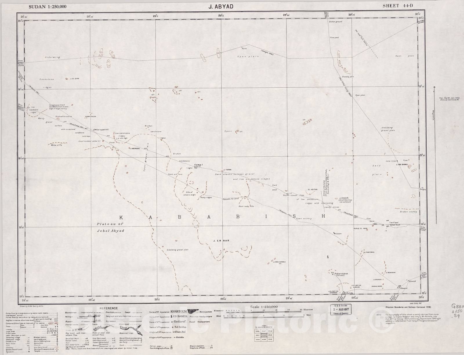 Historic 1909 Map - Sudan 1:250,000 - J. Abyad Sheet 44-D 1942 - Anglo-Egyptian Sudan