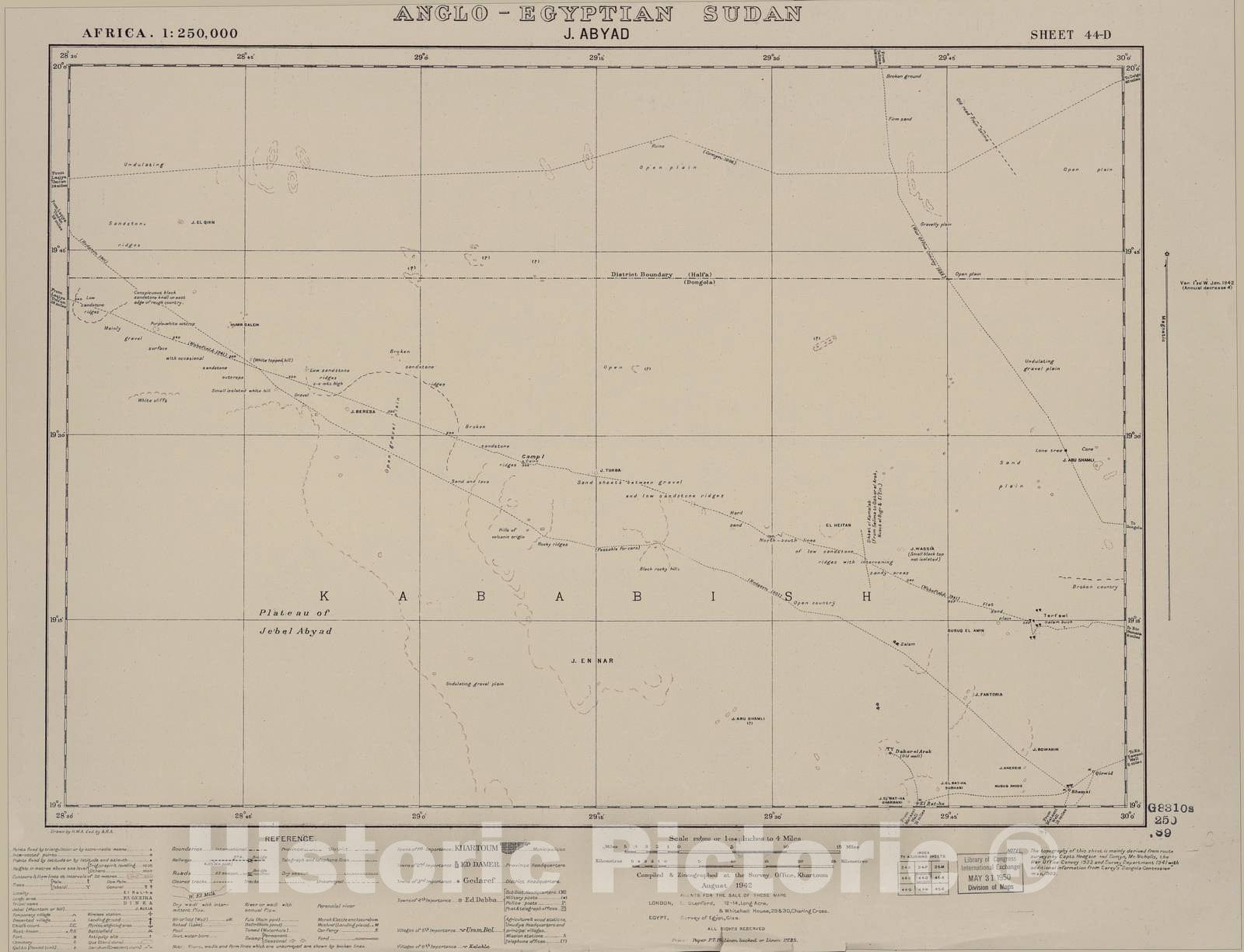 • Historic 1909 Map - Sudan 1:250,000 - J. Abyad Sheet 44-D Aug 1942 - Anglo-Egyptian Sudan