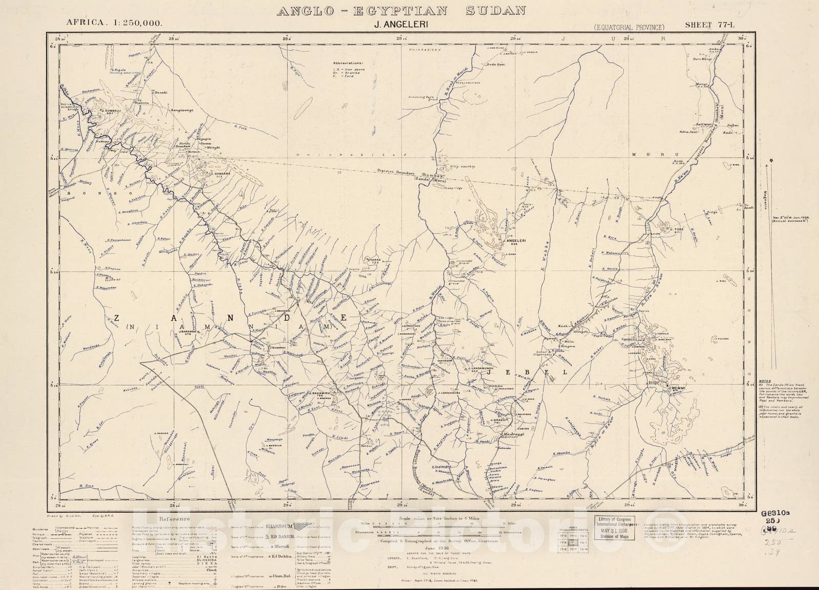 Historic 1909 Map - Sudan 1:250,000 - J. Angeleri Sheet 77-L Jun 1936 - Anglo-Egyptian Sudan
