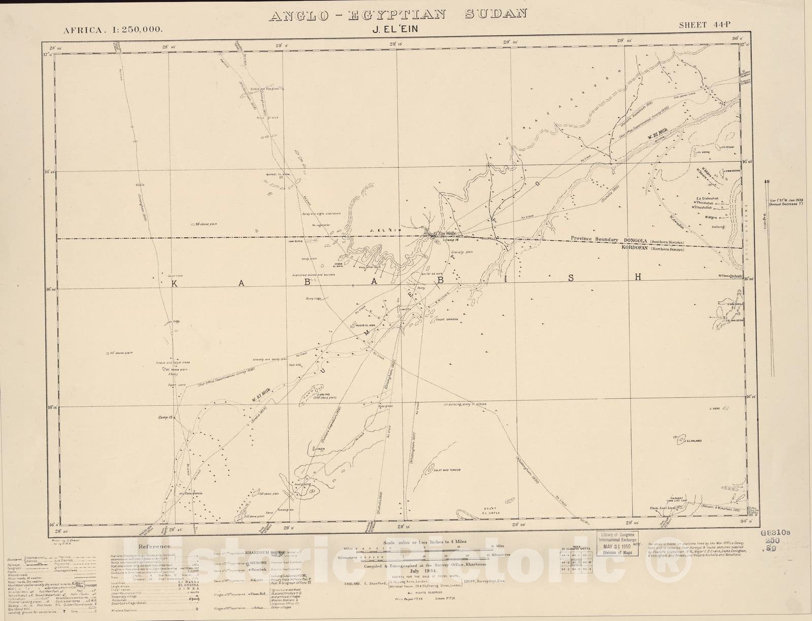 Historic 1909 Map - Sudan 1:250,000 - J. El'ein Sheet 44-P Jul 1934 - Anglo-Egyptian Sudan