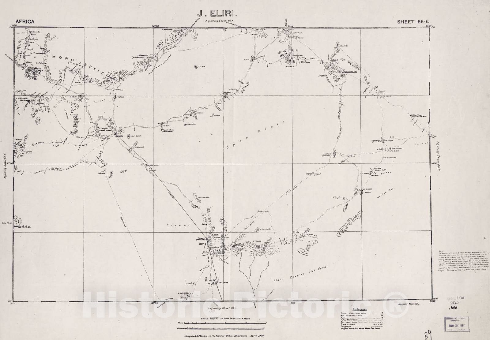 Historic 1909 Map - Sudan 1:250,000 - J. Eliri Sheet 66-E Nov 1910 - Anglo-Egyptian Sudan