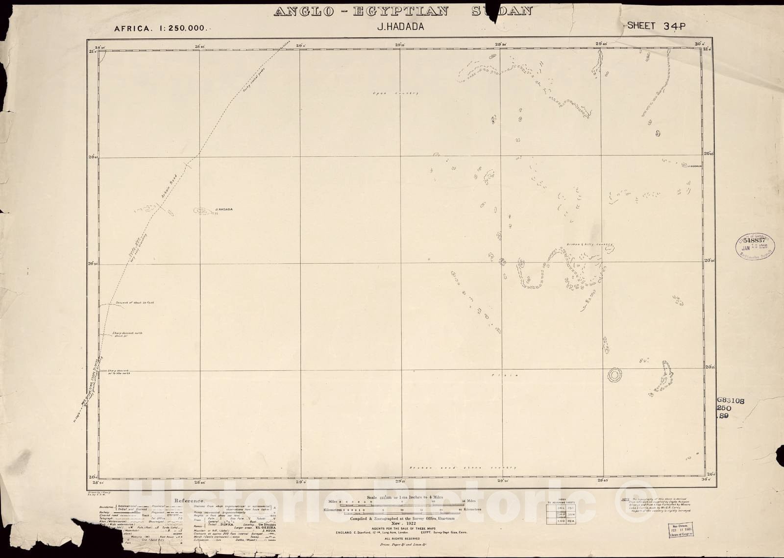 Historic 1909 Map - Sudan 1:250,000 - J. Hadada Sheet 34-P Nov 1922 - Anglo-Egyptian Sudan