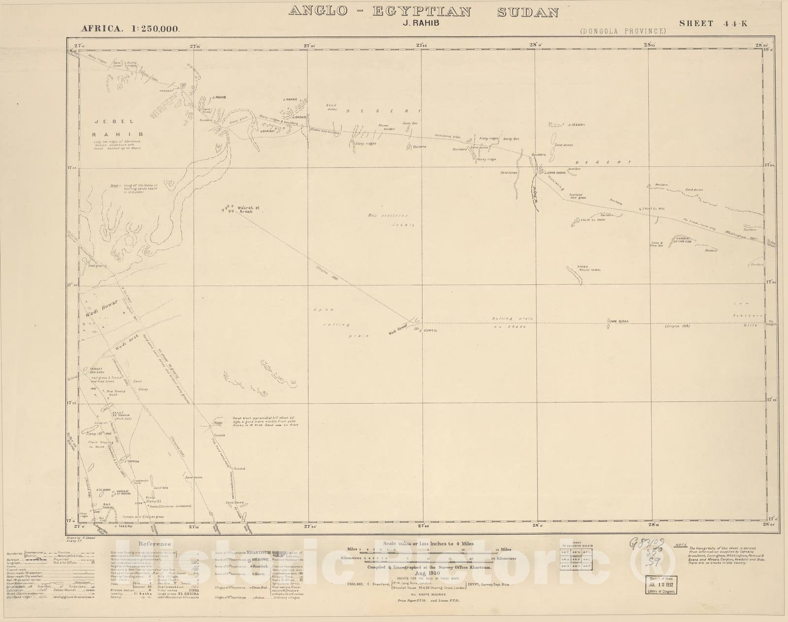 Historic 1909 Map - Sudan 1:250,000 - J. Rahib Sheet 44-K Aug 1930 - Anglo-Egyptian Sudan