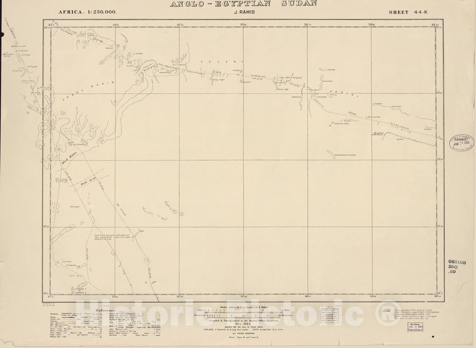 Historic 1909 Map - Sudan 1:250,000 - J. Rahib Sheet 44-K Dec 1922 - Anglo-Egyptian Sudan