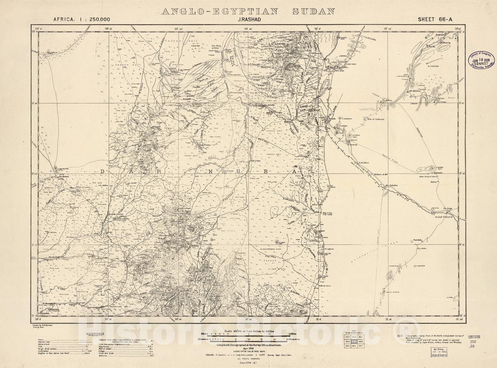 Historic 1909 Map - Sudan 1:250,000 - J. Rashad Sheet 66-A Apr 1919 - Anglo-Egyptian Sudan