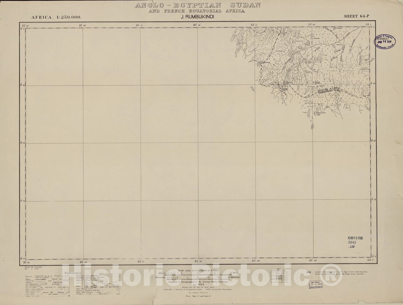 Historic 1909 Map - Sudan 1:250,000 - J. Rumbukindi Sheet 64-P Apr 1924 - Anglo-Egyptian Sudan