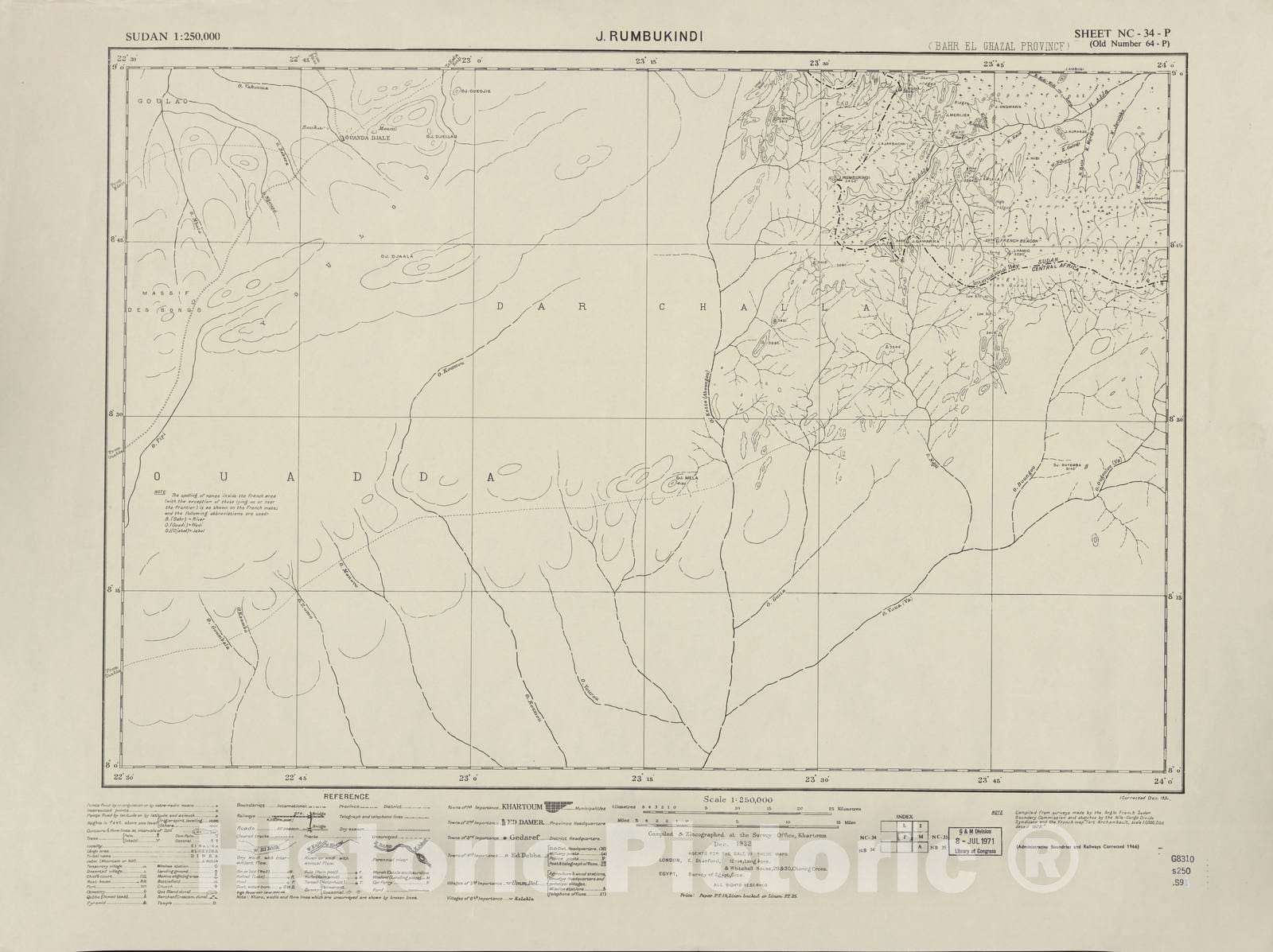 Historic 1909 Map - Sudan 1:250,000 - J. Rumbukindi Sheet NC-34-P (Old Number 64-P) Dec 1932 - Anglo-Egyptian Sudan