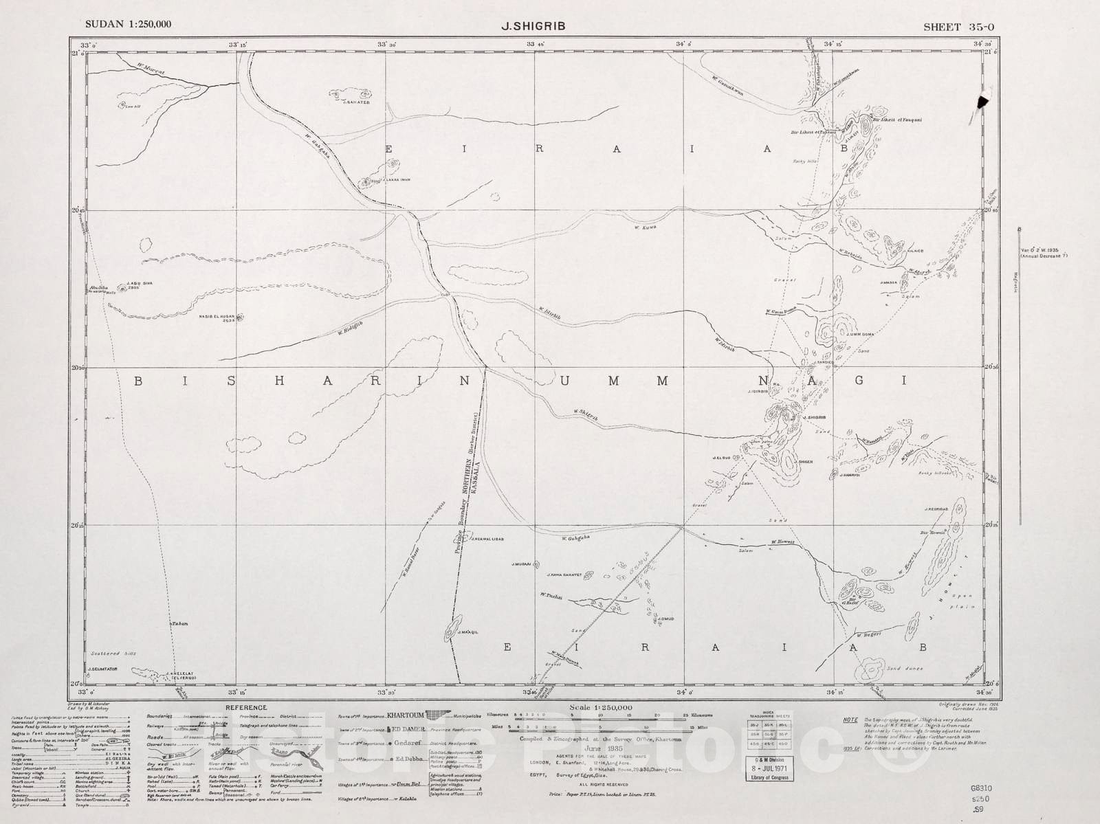 Historic 1909 Map - Sudan 1:250,000 - J. Shigrib Sheet 35-O Jun 1935 - Anglo-Egyptian Sudan