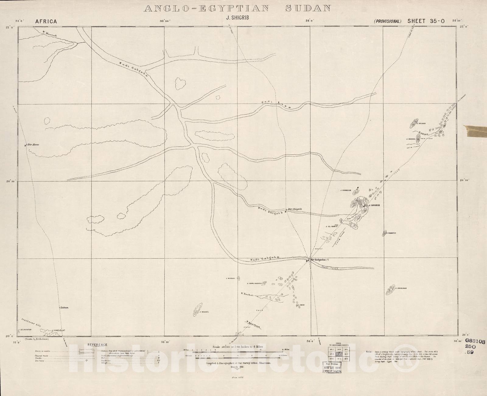 Historic 1909 Map - Sudan 1:250,000 - J. Shigrib Sheet 35-O Mar 1912 - Anglo-Egyptian Sudan