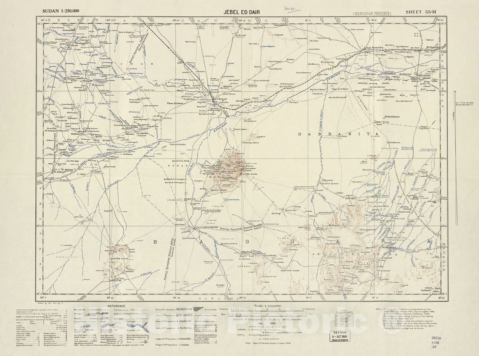 Historic 1909 Map - Sudan 1:250,000 - Jebel Ed Dair Sheet 55-M Dec 1936 - Anglo-Egyptian Sudan