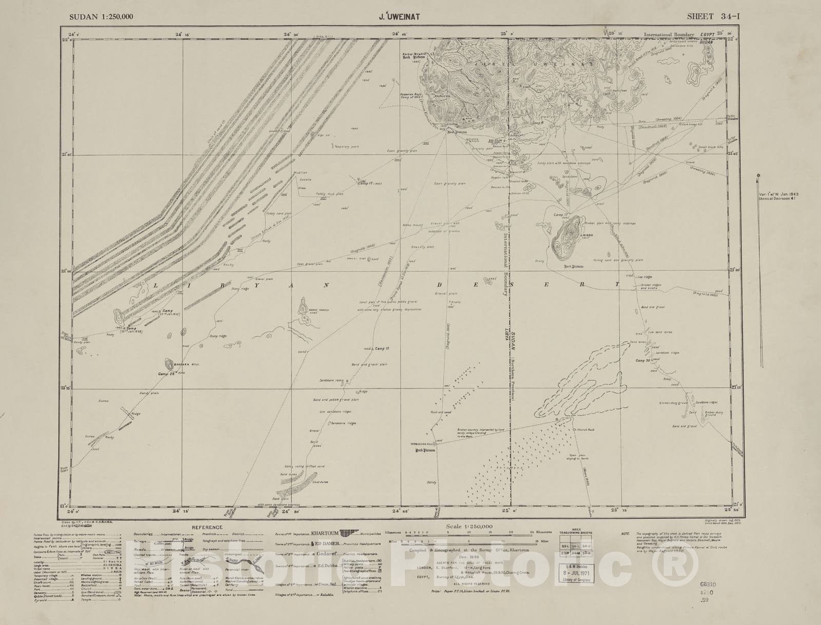 Historic 1909 Map - Sudan 1:250,000 - J.Uweinat Sheet 34-I Dec 1943 - Anglo-Egyptian Sudan